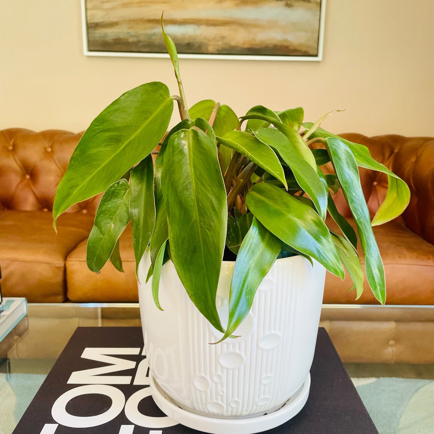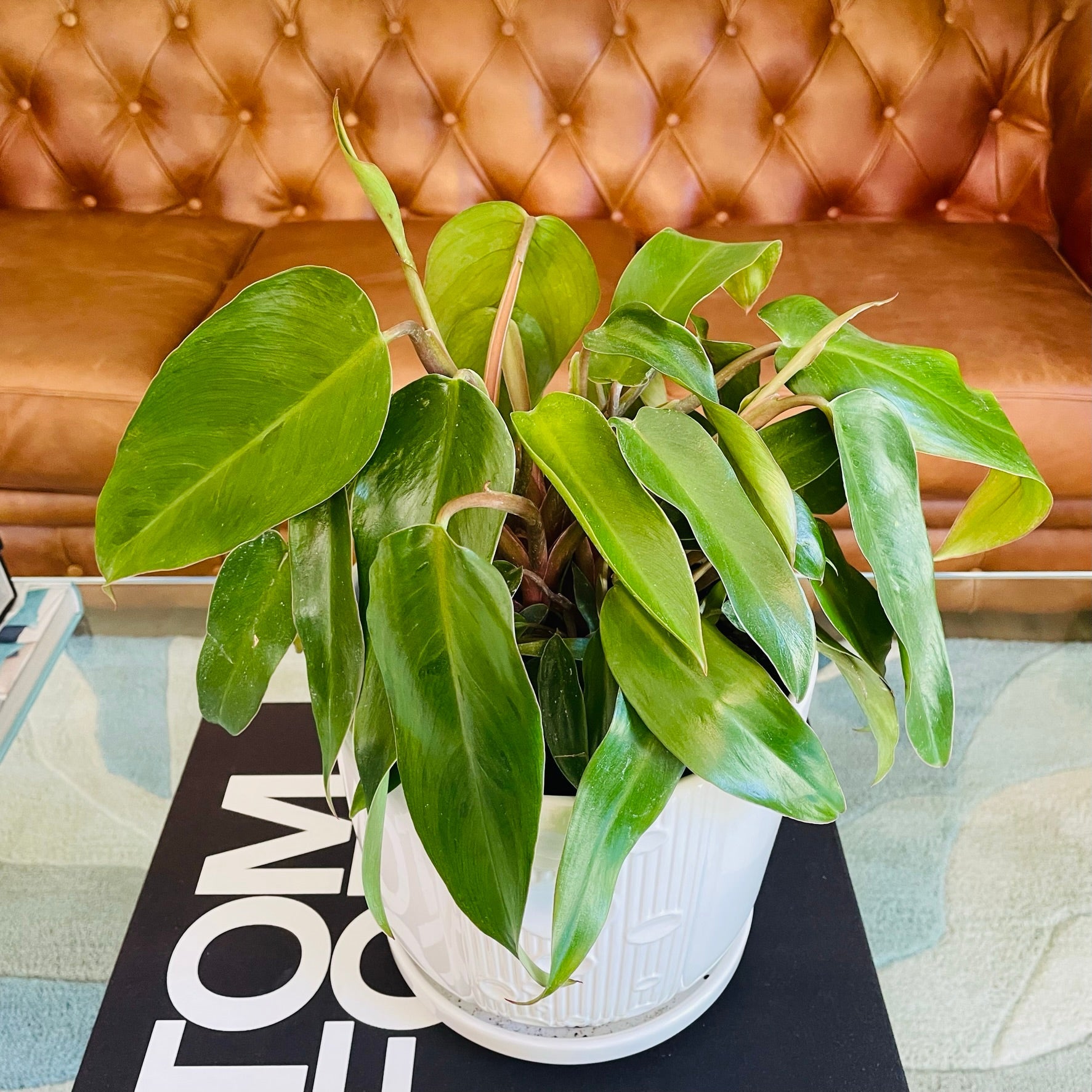 Filodendro Red emeral en maceta de cerámica tamaño "L" color blanco.